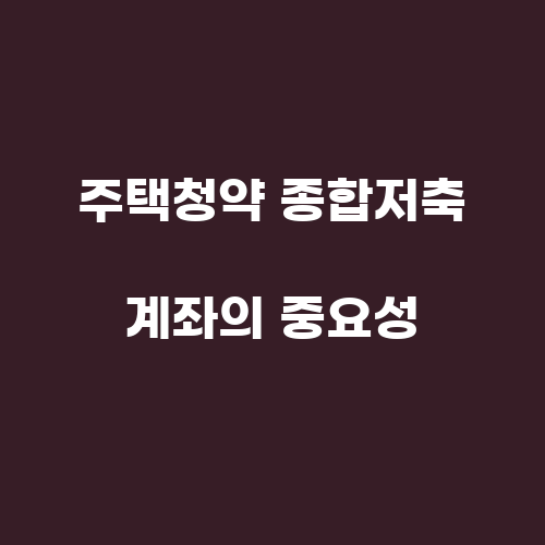 주택청약 종합저축 계좌의 중요성