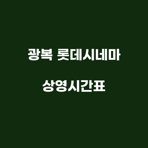 영화 상영시간표는 매일 업데이트되며, 최신 영화의 상영 시간과 잔여 좌석 수를 확인할 수 있습니다. 광복 롯데시네마의 상영시간표는 롯데시네마 공식 웹사이트에서 확인할 수 있으며, 모바일 앱을 통해서도 손쉽게 예매가 가능합니다.